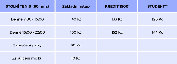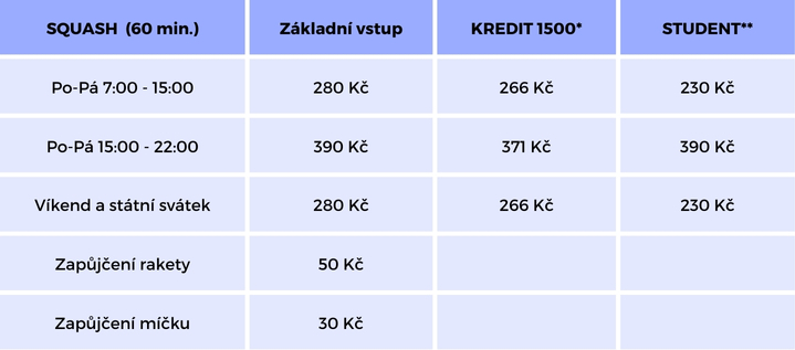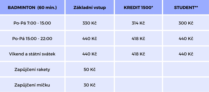 - Rezervace u raketových sportů je možná pouze na 60 min.